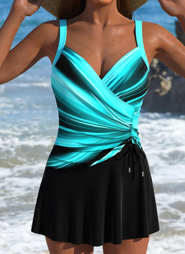 Drawstring Cyan Ombre One Piece Swimdress
