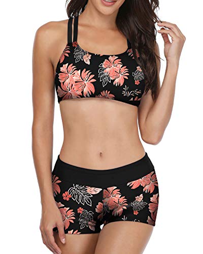 【FEATRUES】: Swim tank top + sports bra + boyshort. Trendy 3 piece bathing suit offers you a playful range of combination, such as modest tankini swimsuits built-in padded bra or only one piece swim bikini top matches with tankini short.